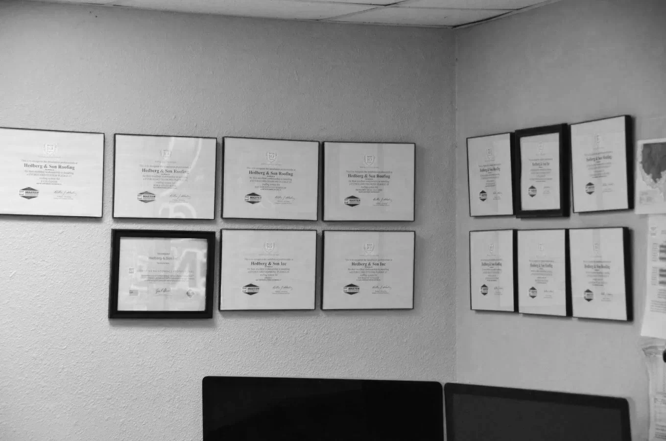 The company began when co-owner Eric Hedberg placed a small ad in the Altoona Herald. That simple ad led to the company’s very first job—a roof replacement on an old hog barn between Bondurant and Altoona, Iowa. From that first project forward, the business grew steadily through word of mouth, quality craftsmanship, and trust.
